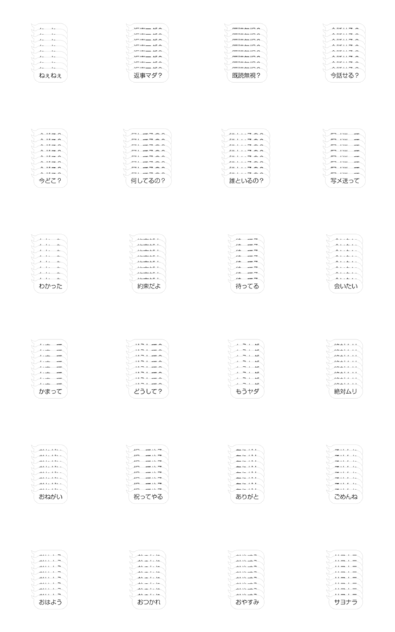 メンヘラ女子が言いそうなフレーズに連投したような動きをつけました。スタ爆や連投をしなくても1プッシュで相手に適度な緊張を与えることが可能です!普通の日常会話にも