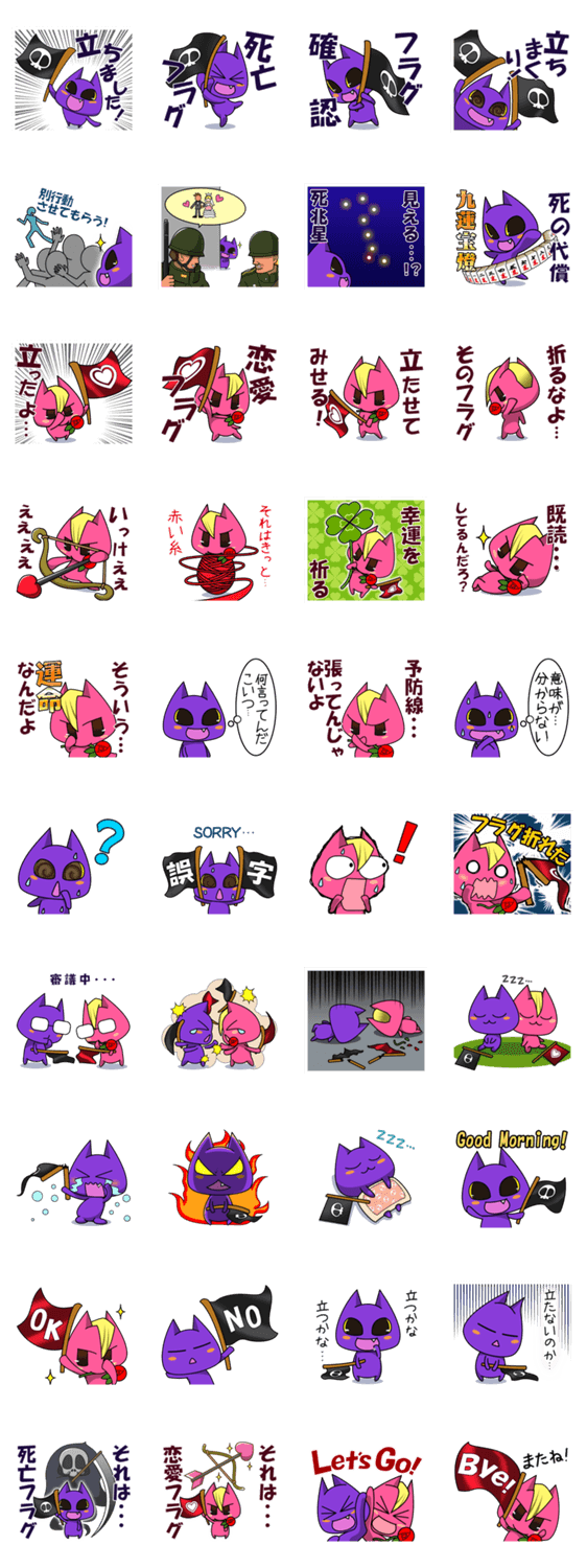 フラグ界の2大巨頭、死亡フラグと恋愛フラグをキャラクター化。日常の中で、フラグが立ったと思った時にお使いください。
