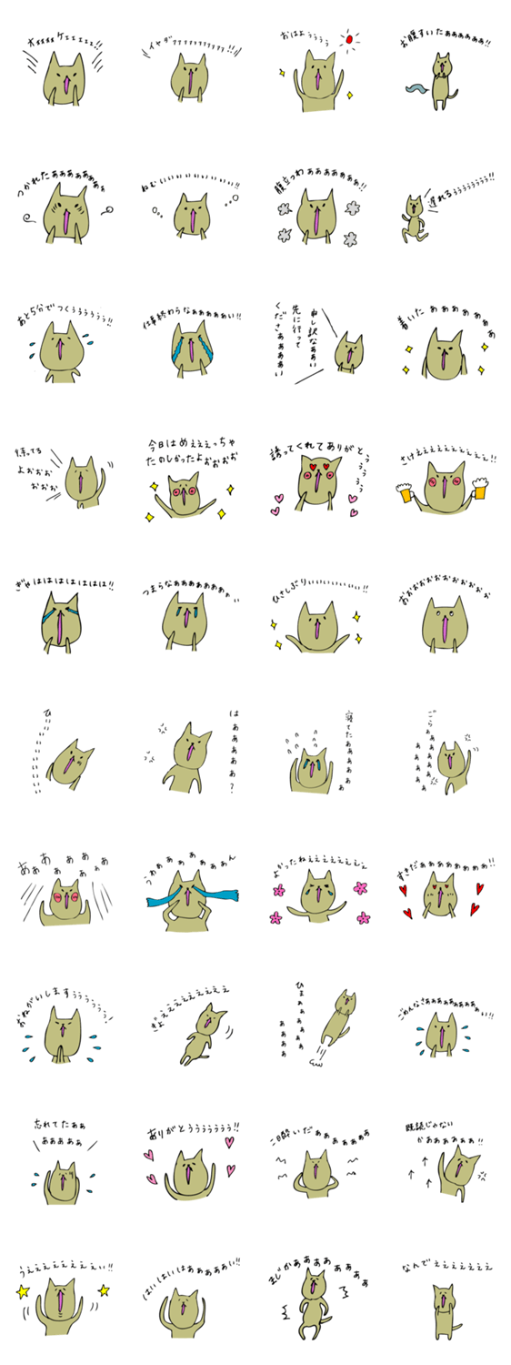 とにかくテンション高く想いを伝えたい!とりあえず叫びたい!そんな方におススメの手書き風猫スタンプです。