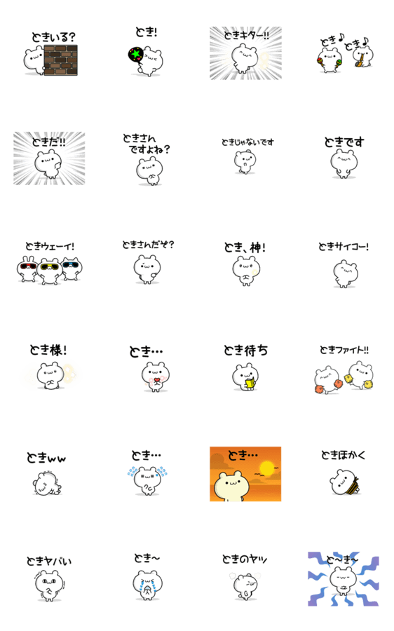 トキさん用動く名字名前スタンプです。土亀、土岐、外木、度紀、戸岐、戸来、斎、斗鬼、時、登岐、解、ときさんに!