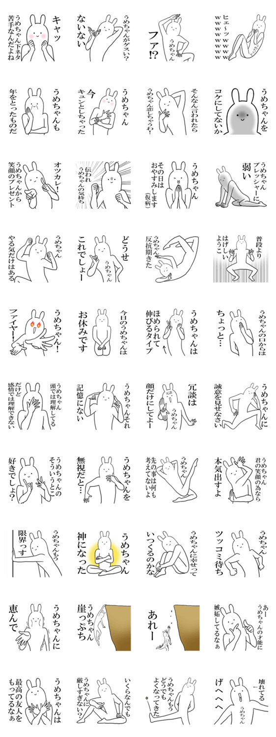うめちゃんが使えるシュールな名前スタンプ。うめだ,うめざわ,うめかわ,うめ,うめざき,うめつ,うめき,梅,梅田,梅川,梅崎,梅津,梅木などうめちゃんが使えるスタンプだよ