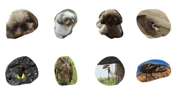 めぐちゃん犬と、大自然からの昆虫や動物。ありのままの姿