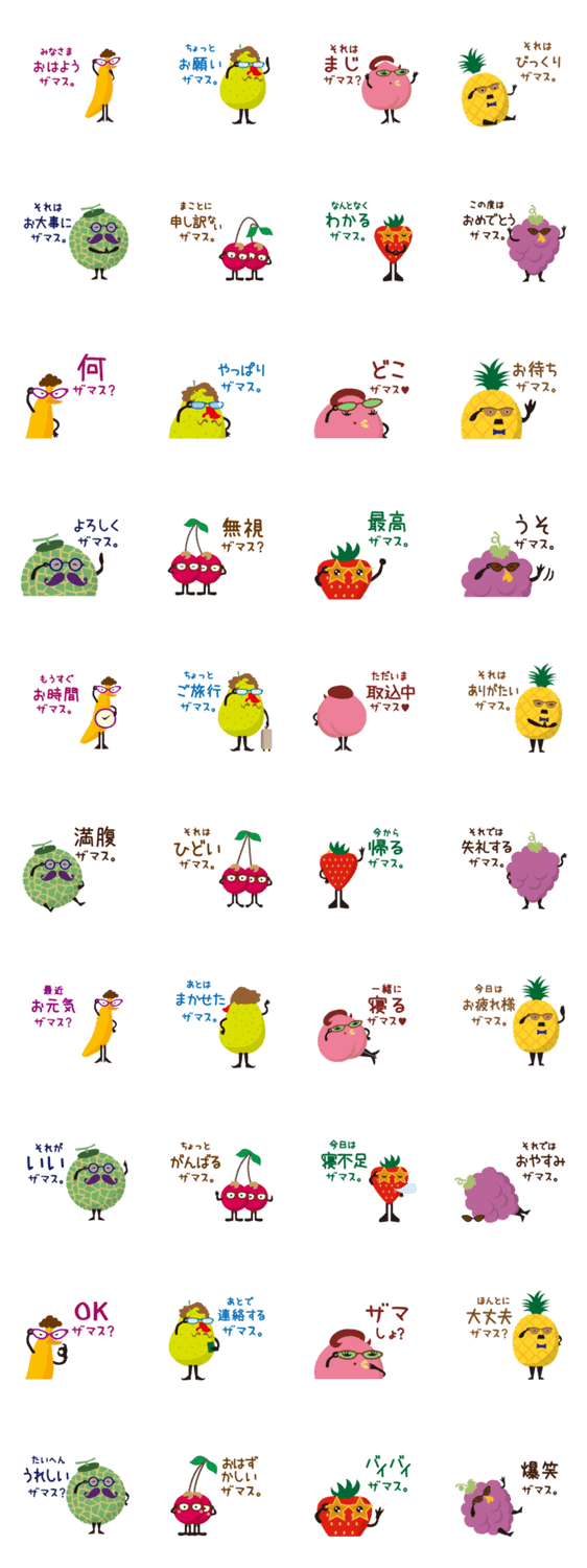 ザマス口調のくだものスタンプ。
