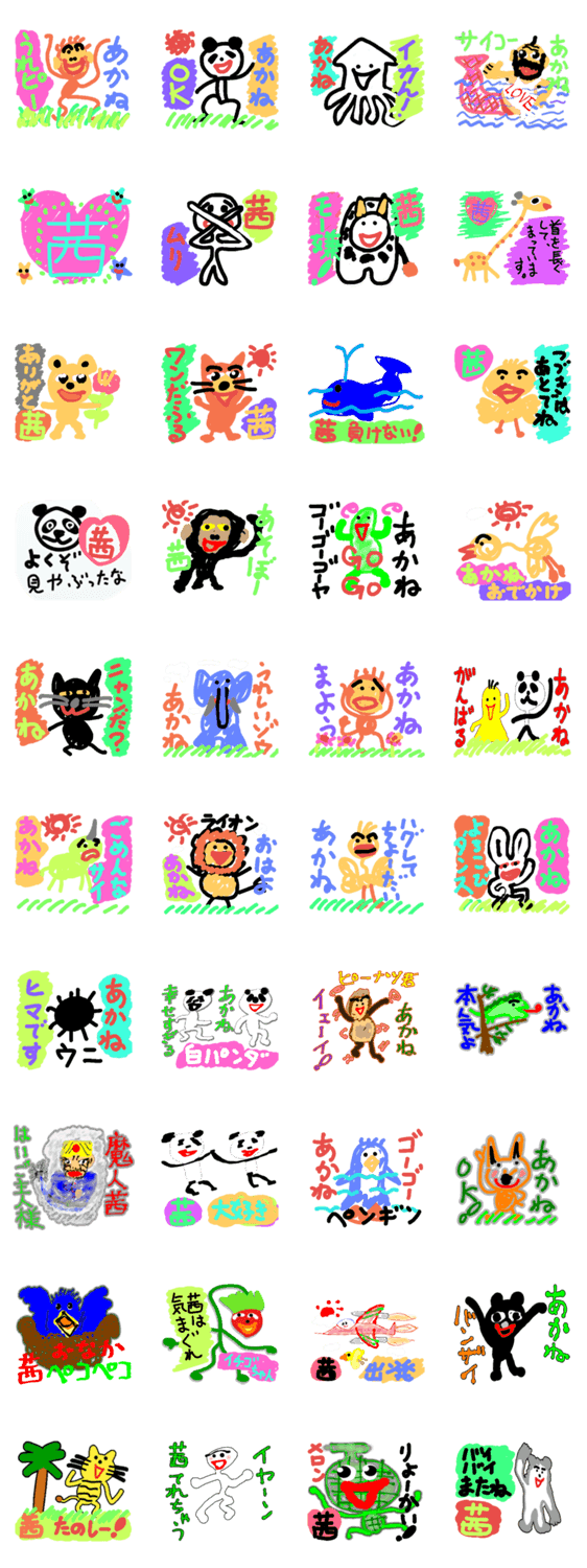 アカネさん専用スタンプです。指で描いたデタラメっぽいイラストが、あなたの気持ちを伝えます。自分の名前が茜、またはお友達に、あかねさんがいるという方にオススメです