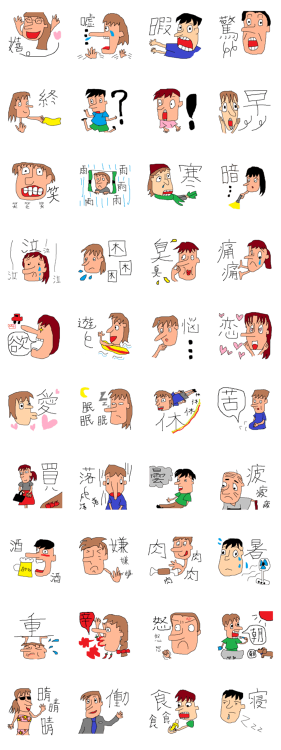 漢字一文字で気持ちを伝え、スタンプの表情でも伝わるので言葉無くても言葉のやり取りができちゃう。一度見たらくせになる表情で気持ちを伝えよう