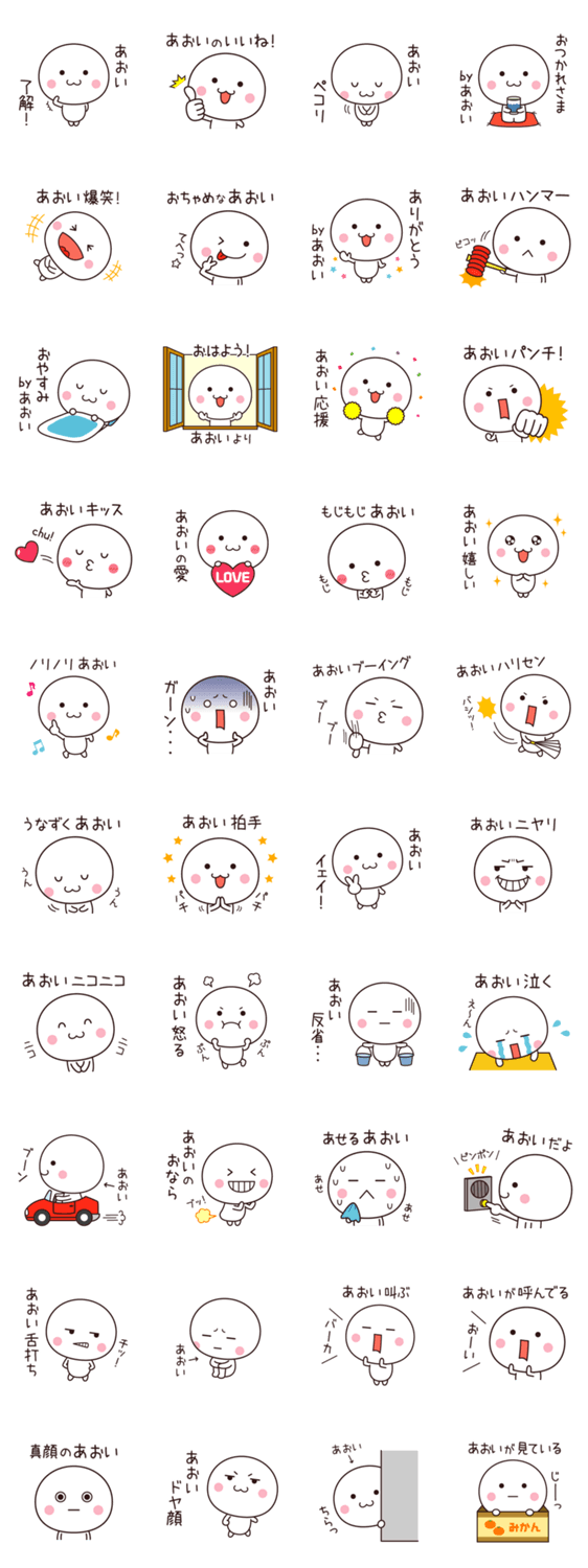 あおいちゃん、あおいさん、あおいくん専用の名前スタンプ。葵、蒼井、碧、青井など、自分だけのスタンプです☆