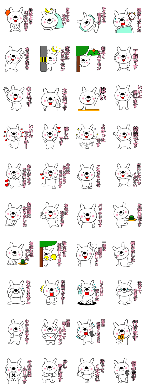 目上の人にも使える敬語の使えるシンプルで可愛いウサギのスタンプです