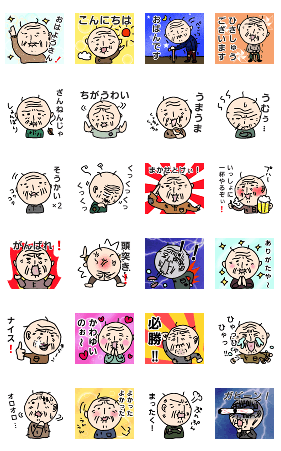 貧乏そうなつぎはぎだらけの服を着た、おんぼろじいさんのスタンプ