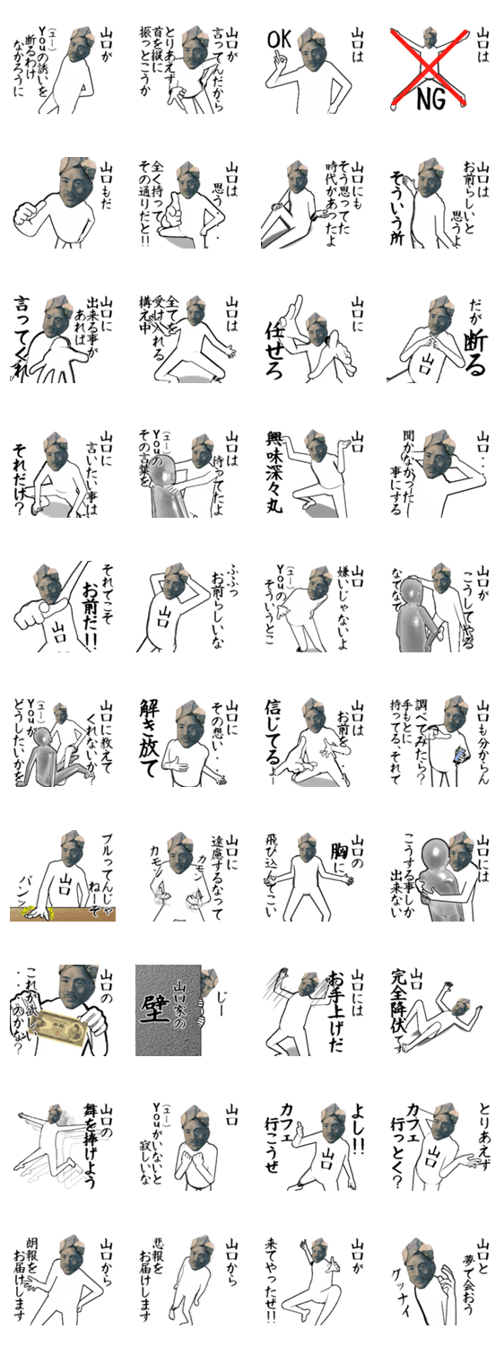 癖が強めの名前・名字・あだ名スタンプです。札/黒/白/ピンクの4パターンあり。山口・ヤマグチ・やまぐちさん専用
