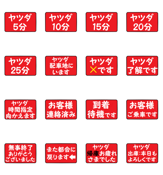 ヤツダさんが配車に使えるスタンプです