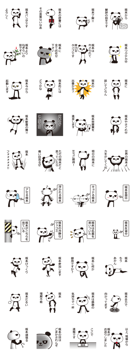 主に坂本さん(さかもとさん、サカモトさん)が日常会話で使用できる名字(苗字)スタンプです。