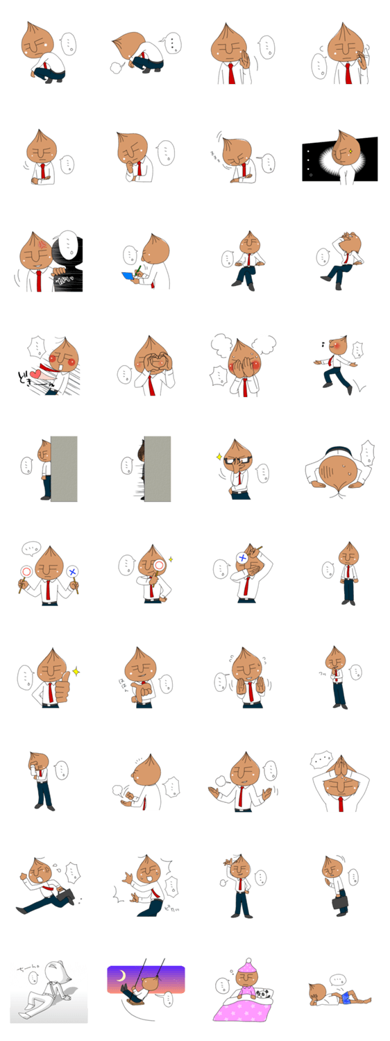 ちょっときもくてシュールだけどジワジワくる、実はクールで時々熱い、紳士なサラリーマン「たまねぎお」が、あなたに代わって意味深さを無言で訴えます。