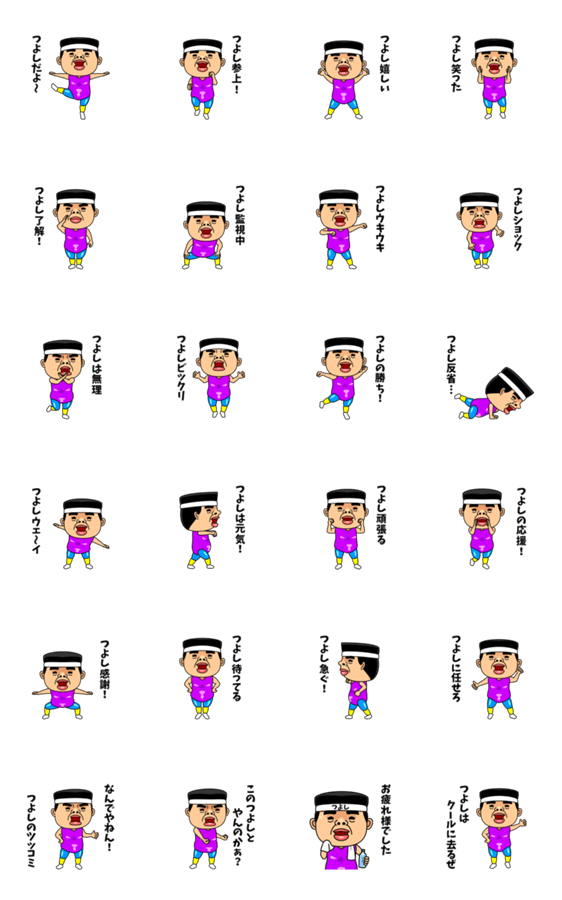 つよしおじちゃんがエアロビクスダンスで感情を表現します!全国のツヨシ(剛,強,毅,剛志,乾,健志,剛史,功)さん専用の名前入り動画スタンプ。贈り物としても最適♪