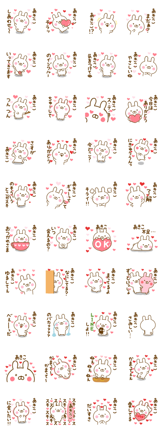 好きすぎる♥あきこ♥に送るゆる~く、かわいい、うさぎ(うさひな)の毎日使えるラブラブ名前スタンプです♥