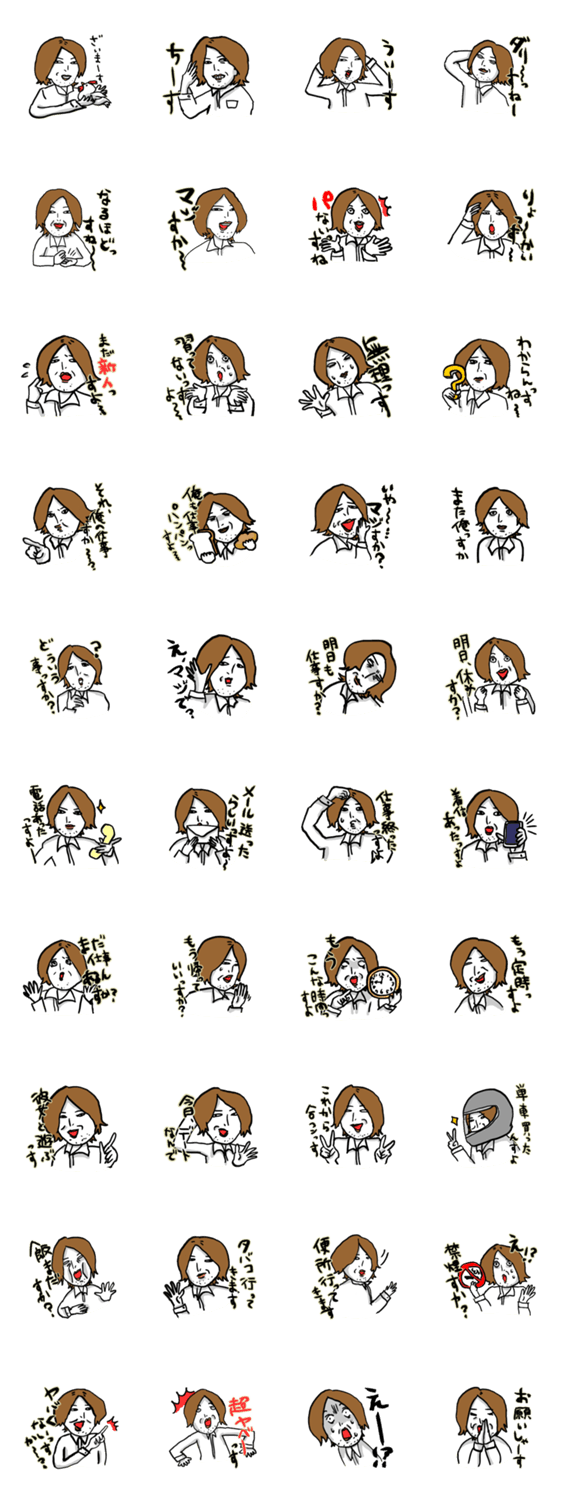 少しウザくて生意気な新入社員フジイのスタンプです。社内や先輩・後輩のコミュニケーションツールとしてどうぞ。