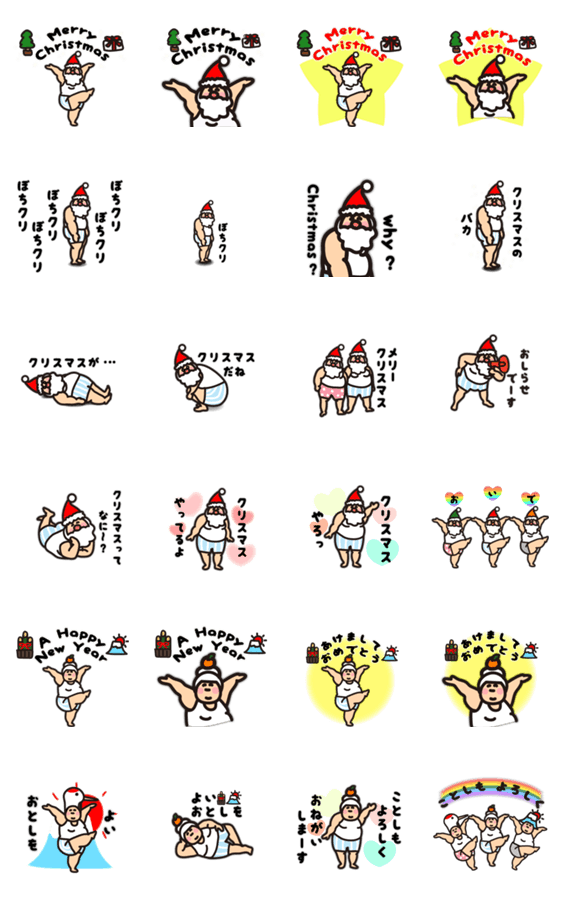 パンツ一丁なおデブさんの、クリスマスとお正月に使えるスタンプです。
