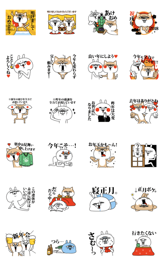 顔芸うさぎ&顔芸わんこの激しい年賀・正月 -LINEスタンプマニア
