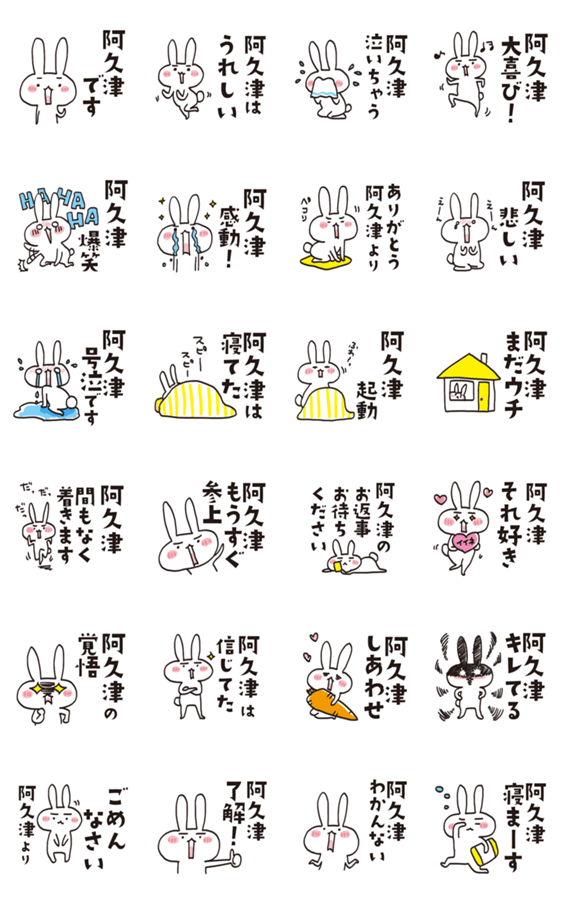全国の阿久津さんのためのうさぎスタンプです。