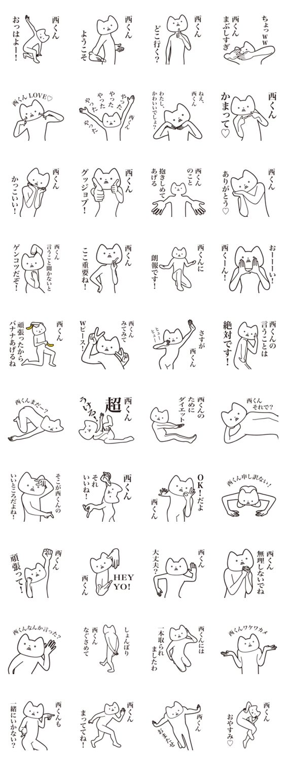 西君(にしくん/ニシくん)に送る名字・名前しゃくれねこスタンプ