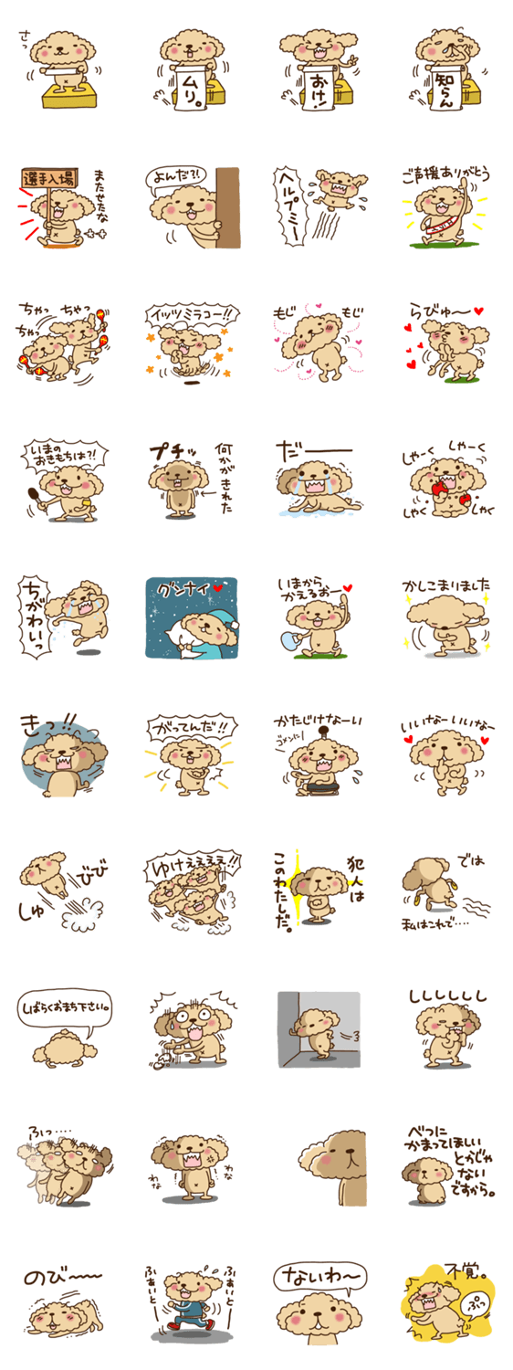 限りなく人間に近い犬、トイプードルのぷう太郎スタンプの第3弾です。