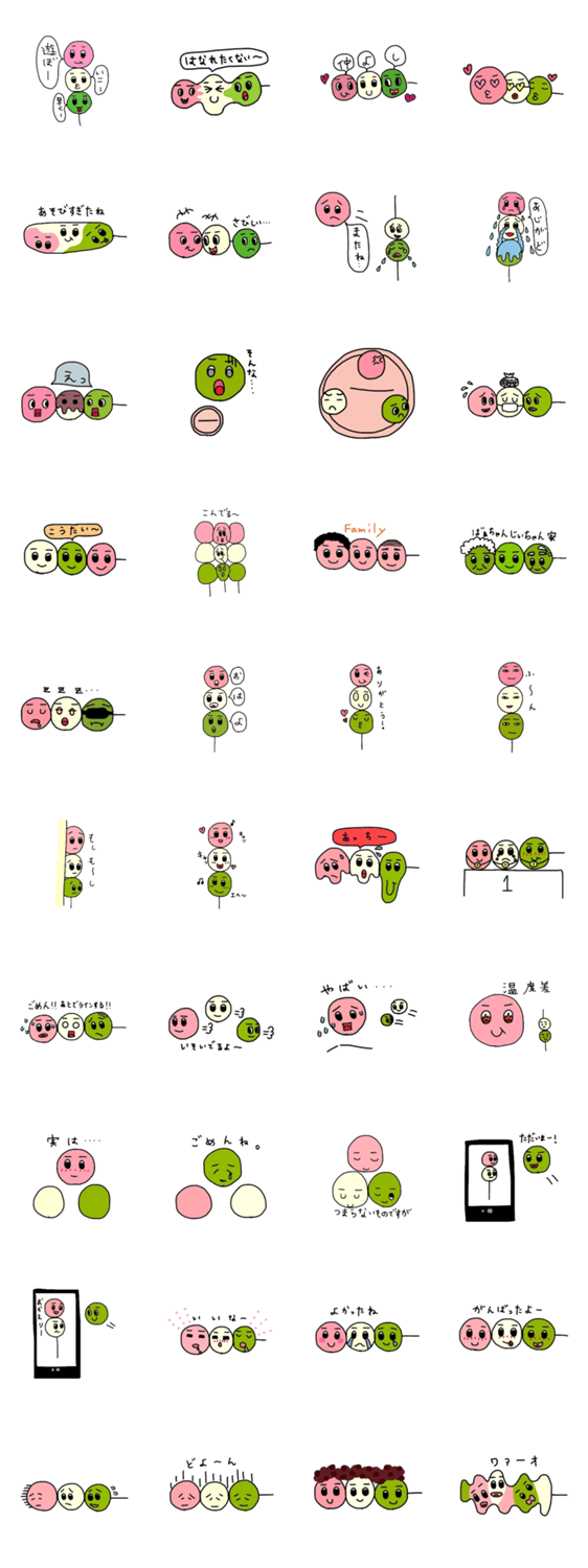 仲良し3色だんごがいろんな気持ちをつたえます。