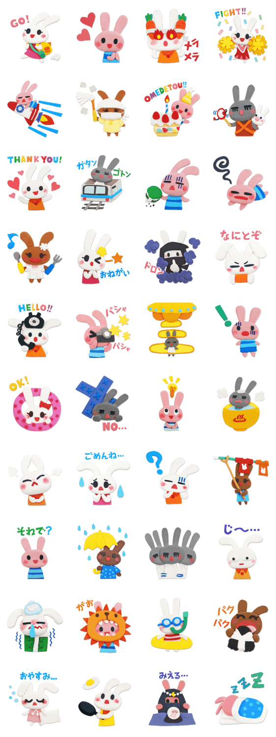 粘土をこねこねして生まれたうさぎさんたち。楽しいLINEのおてつだいがしたいみたいです。