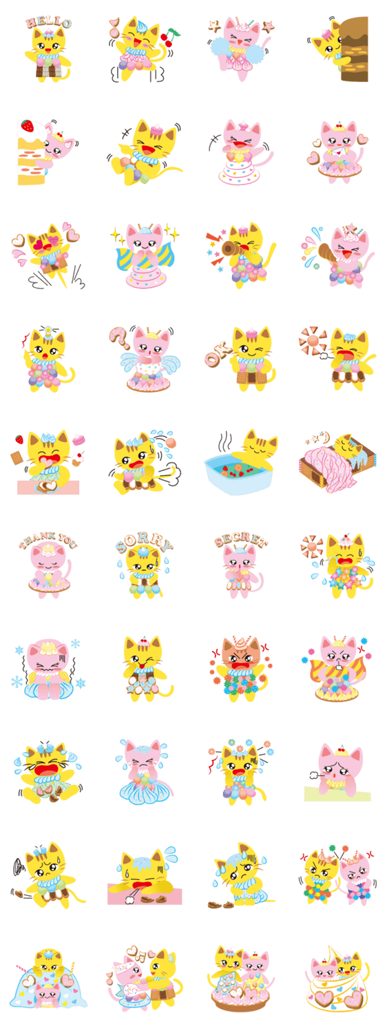スイーツデコされたラブラブにゃんこたち。甘い生活のひとこまにどうぞ。