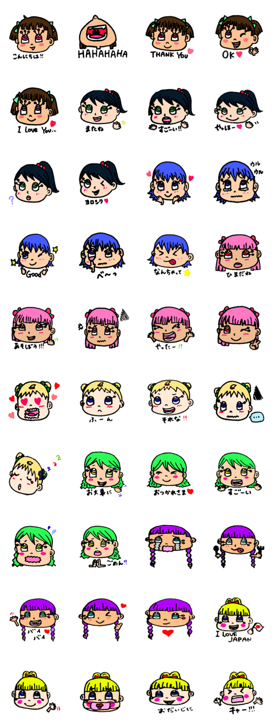 かわいい女の子たちのスタンプです。様々な場面で使えますよ
