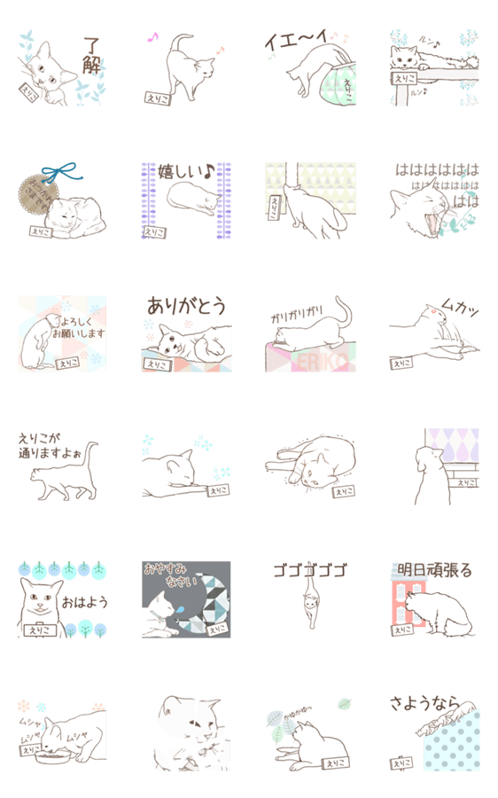 猫大好き【えりこ】北欧風名前スタンプ -LINEスタンプマニア