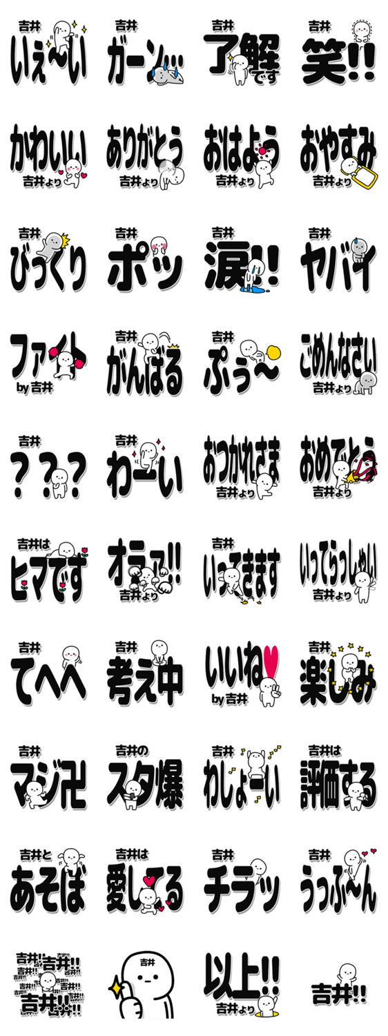 吉井さんのための便利に面白く返信、挨拶できるデカ文字のスタンプです。シンプルなので誰にでも使えます!
