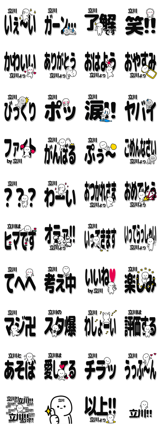 立川さんのための便利に面白く返信、挨拶できるデカ文字のスタンプです。シンプルなので誰にでも使えます!