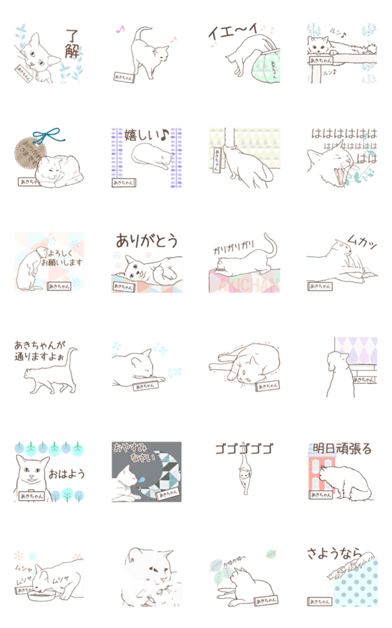 猫好きな、あきちゃんの動く名前スタンプです。北欧風でオシャレ。毎日使える大人かわいいスタンプです。あき、あきこ、あきえ、あきほ、あきなちゃんなど。