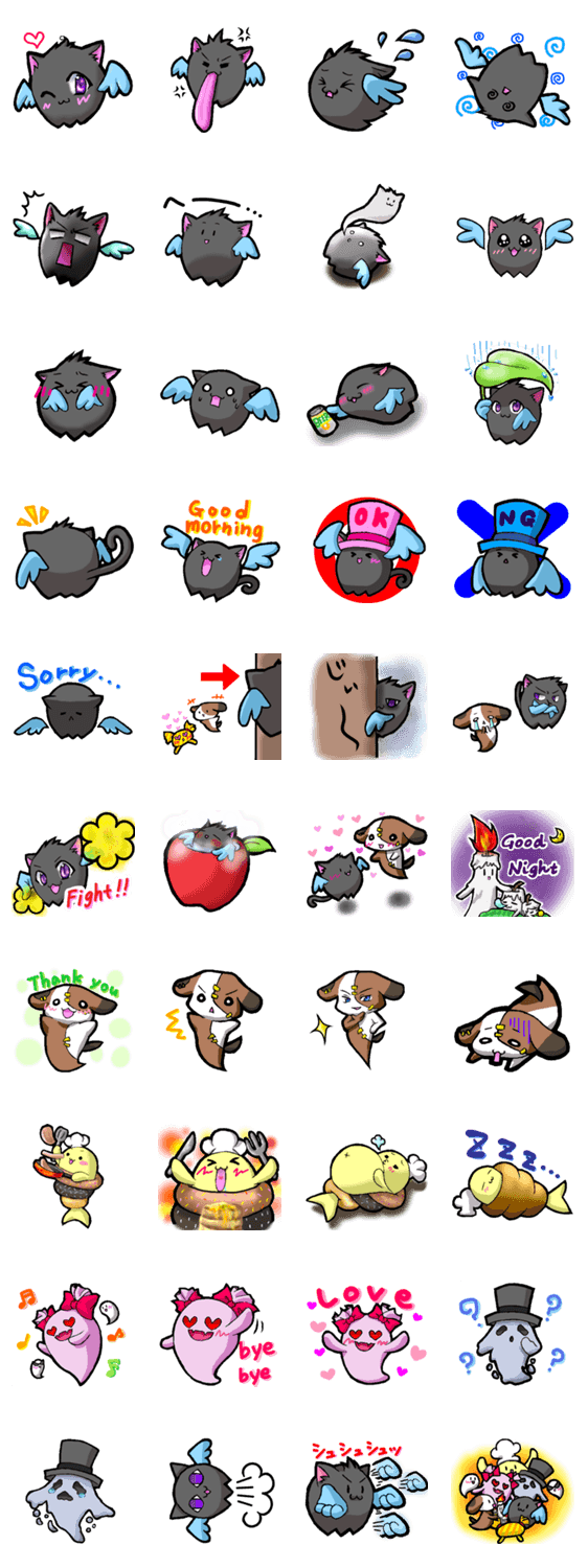 猫のオバケ『ナナ』とその仲間のスタンプです。楽しいLINEライフのお供にぜひどうぞ!