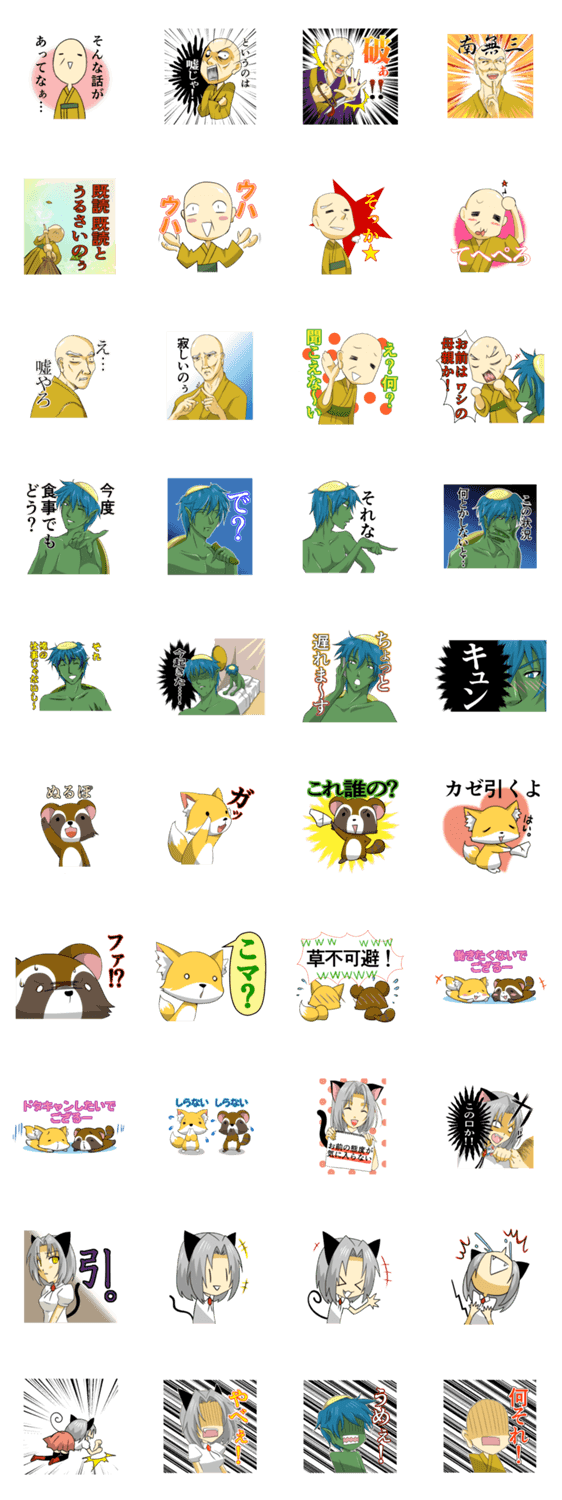 和尚と河童、そのまわりにいる妖怪たちのスタンプです。