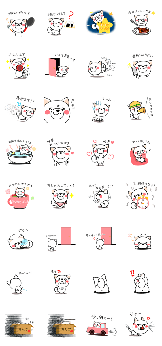 白柴犬好きへ送る、白柴犬好きの為の、白柴犬のスタンプ。日常で使えるスタンプ(特に主婦の方)