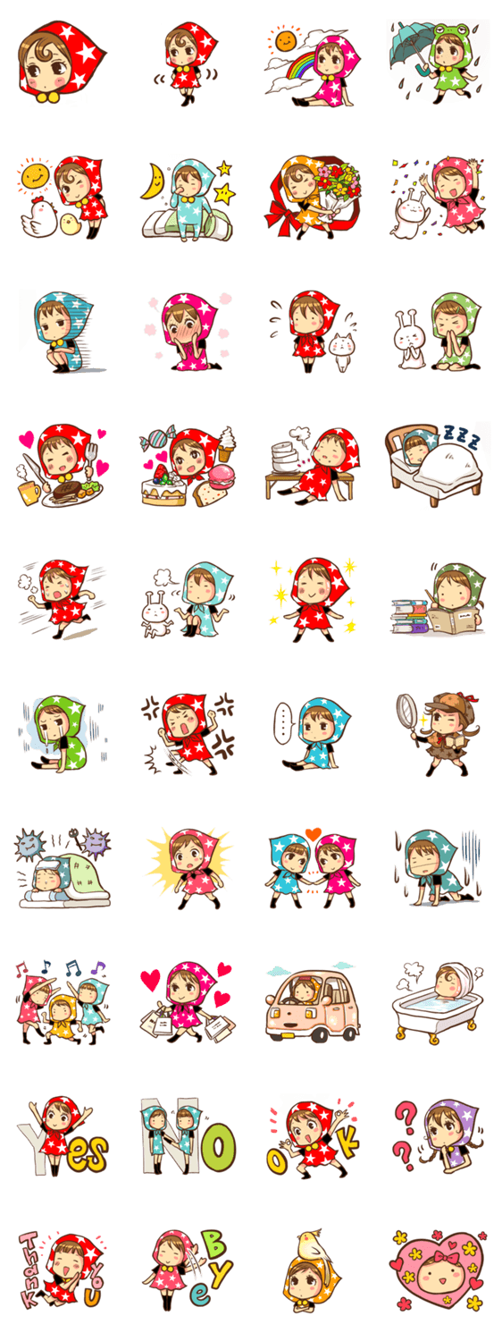 星模様のずきんを被った女の子たちの、日常生活あれこれのスタンプです