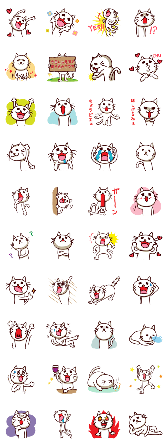 私は白い猫。ゆるくてのほほんとした猫です。可愛く楽しく使ってね!