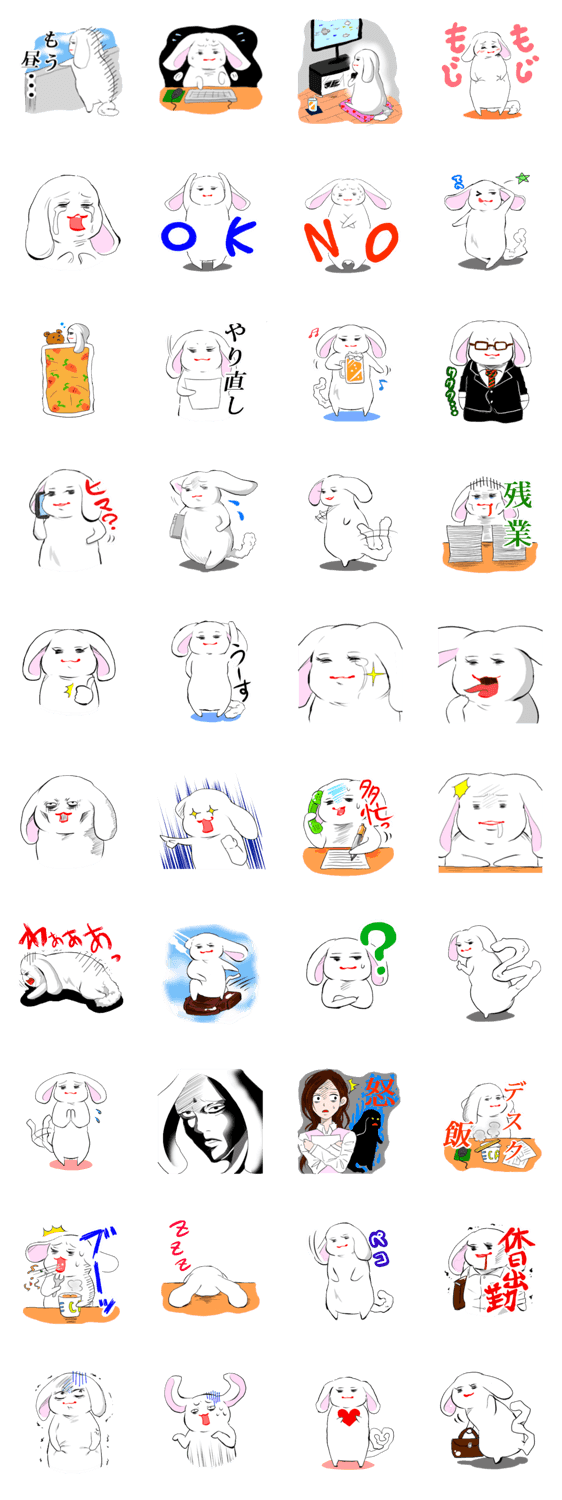 全ての働く人たちに捧ぐ、キュートなはたらくうさぎのスタンプです(=^ω^=)