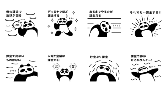 また課金パンダのスタンプを作りました!全ての方に使っていただきたいのですが、特にゲームがお好きな方にはおすすめできる物となっております。よろしくお願いいたします!