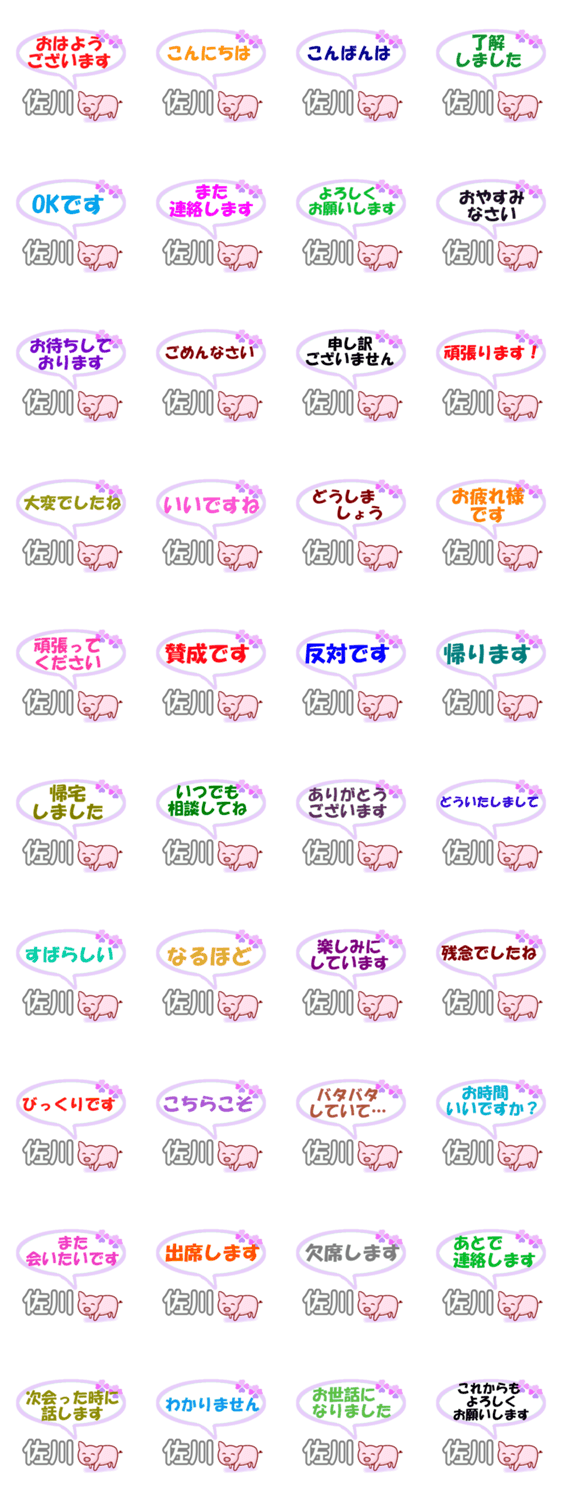 佐川「さがわ」さん専用。おはようございます、了解、出席、欠席、賛成、反対など大人の丁寧な日常会話、連絡用にどうぞ