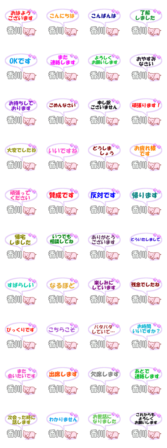 香川「かがわ」さん専用。おはようございます、了解、出席、欠席、賛成、反対など大人の丁寧な日常会話、連絡用にどうぞ