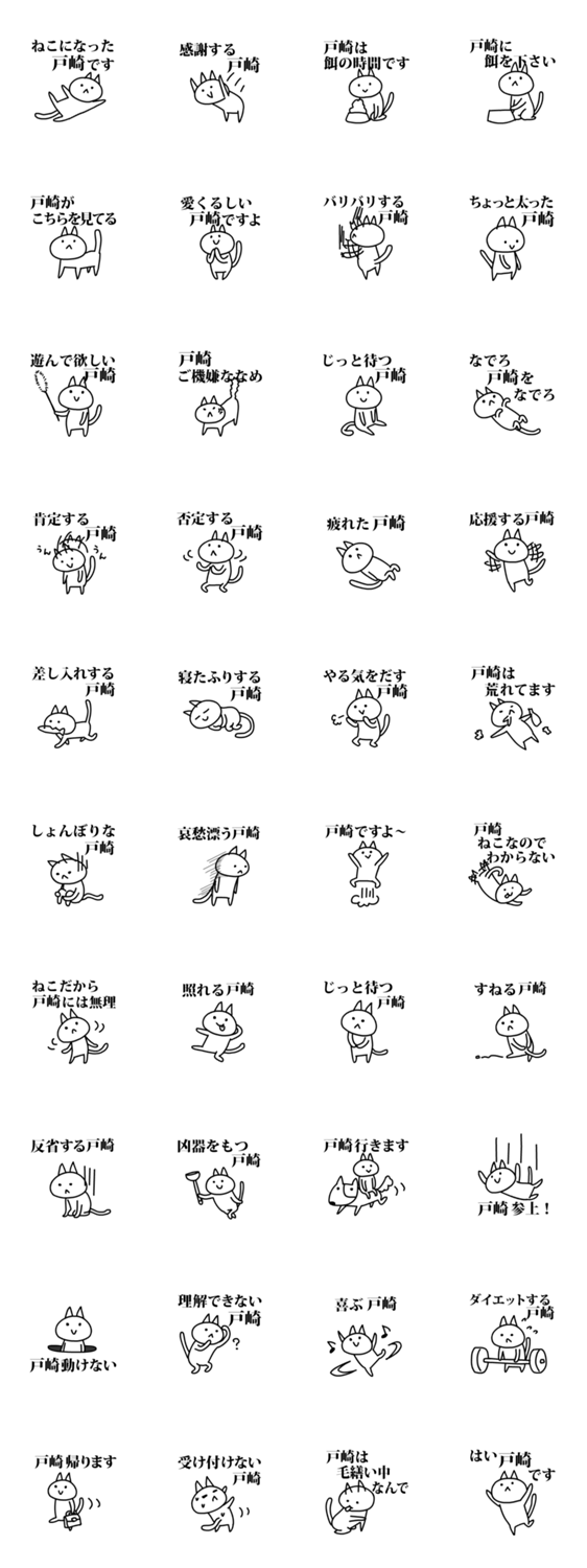 ねこになりました。その最高に愛くるしいかわいい仕草で、日常的に使えるスタンプです。苗字が入った名前スタンプなので毎日使えるんです。ニャー