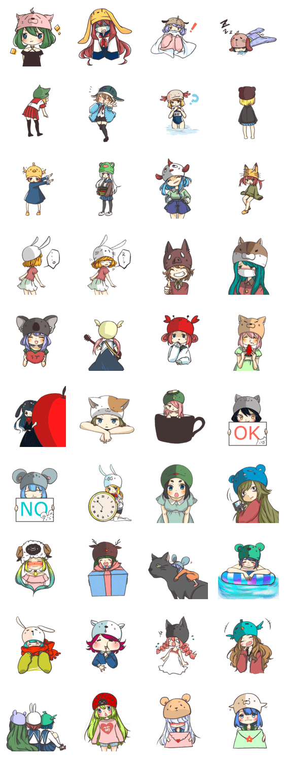 動物の帽子を被った妖精たち。妖精さんとLINEを楽しんでください!