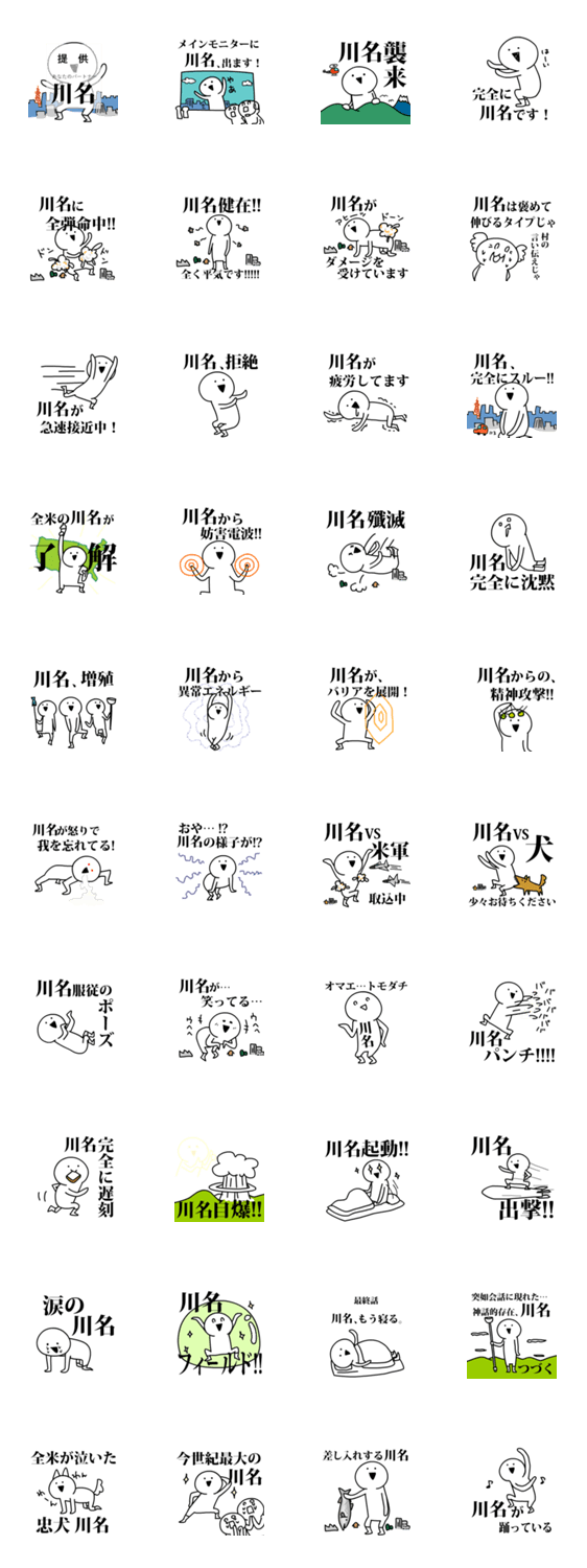 巨大化して襲ってくる名前スタンプ。日常会話として使えたり使えなかったりする、愉快なスタンプです。