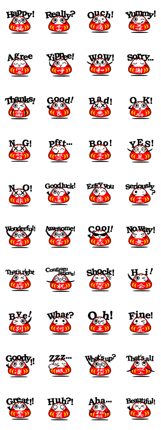 ダルマの英語リアクションスタンプ「ダルさん」です。楽しんで使って下さい。