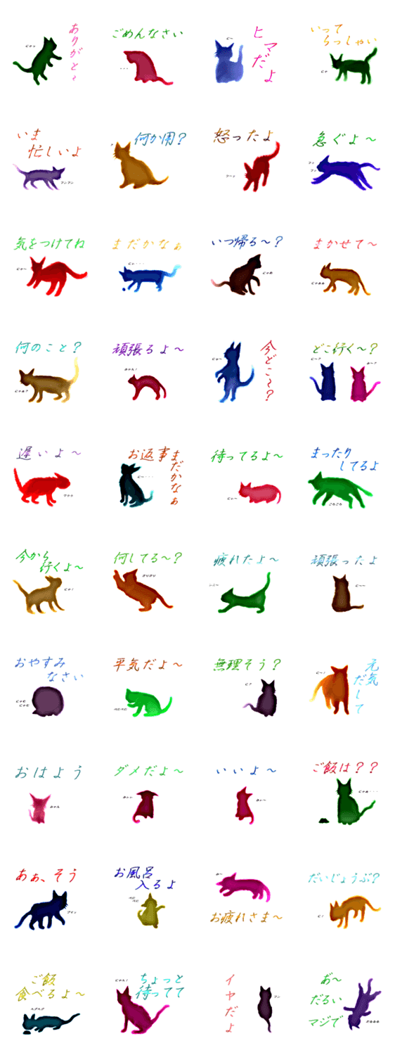 ふと気づくとそばにいるカゲ猫、猫に語りかけるような落ち着いた感じのスタンプです