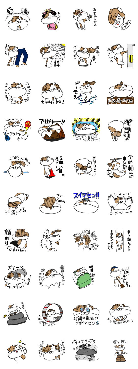 「ありがとう」と「ごめんね」に特化したものです。微妙に違う気持ちを伝えたい→明るく謝りたい・丁寧に感謝したい時など。使うシーンは多様です。2つ目3つ目スタンプに!