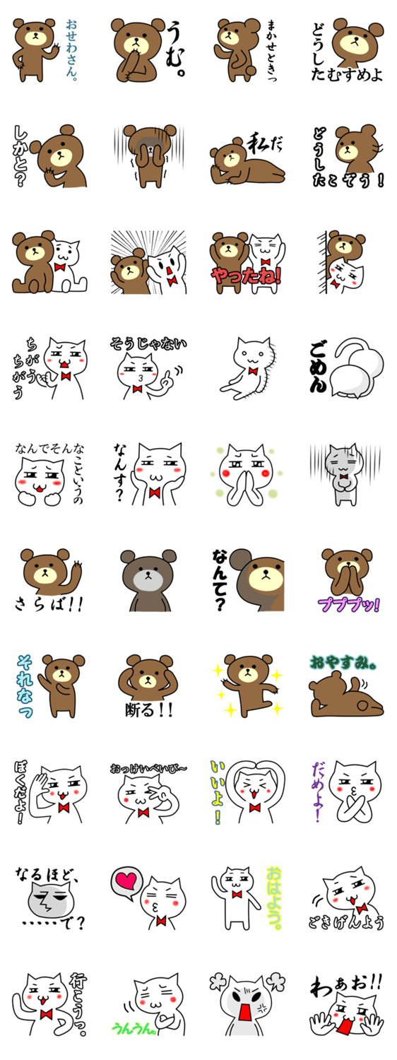 ちょっと上から目線のMr.ベアと、表情豊かでゆる~い白ねこのMr.ペイのメッセージ付きスタンプ【第3弾】です。どうぞよろしくね。