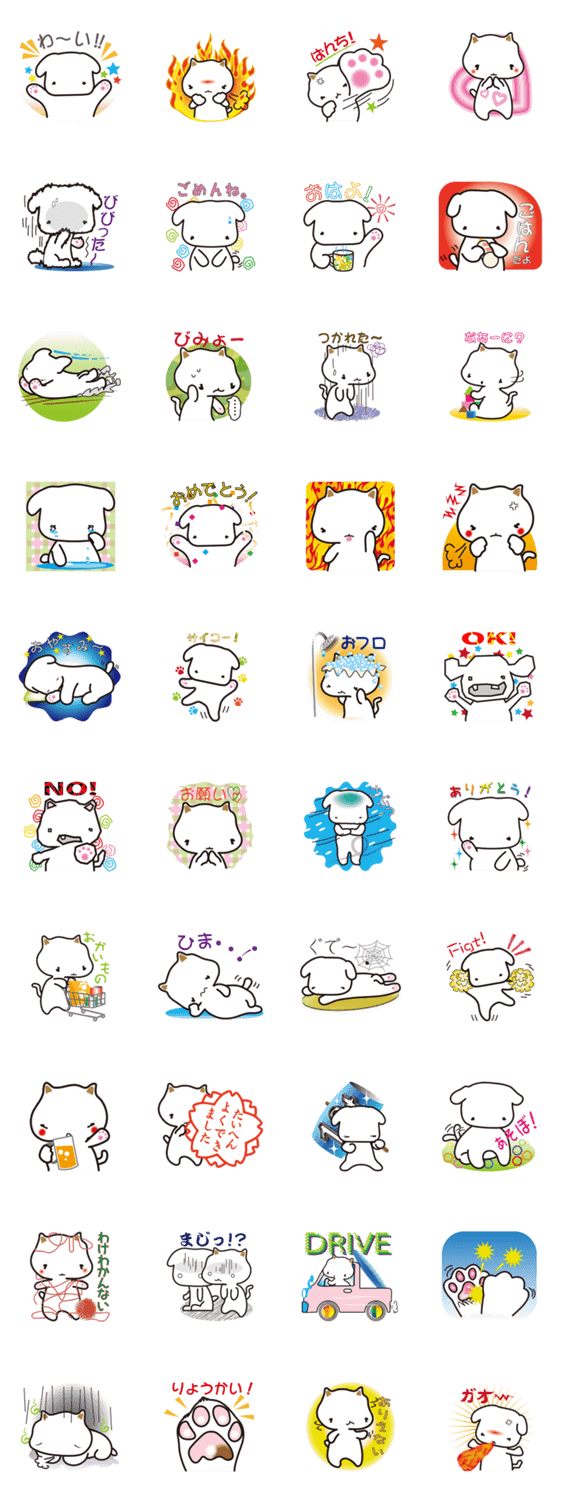 白い犬と猫のスタンプです。いろいろなシーンで使えます。