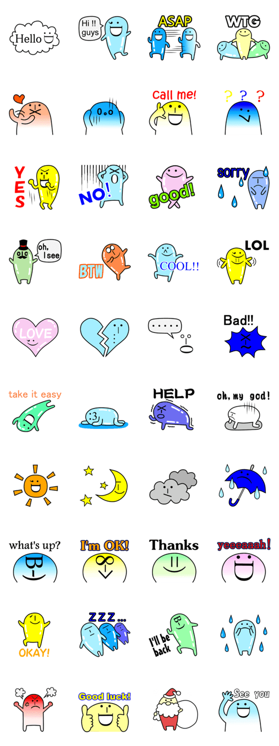 水のモンスター達の、カラフルなメッセージ付きスタンプです。